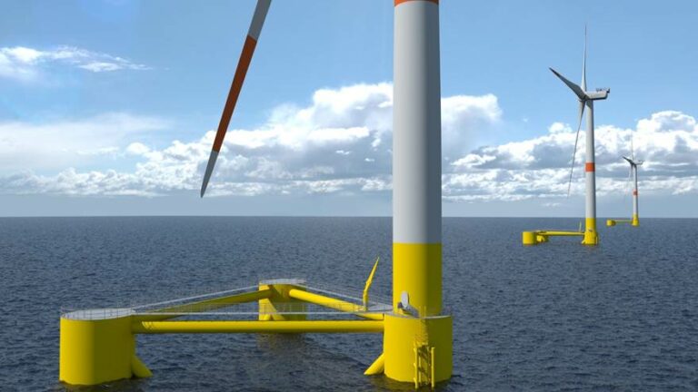 The three wind turbines will be supported by Principle Power’s 3rd-gen semi-submersible WindFloat floating foundations.