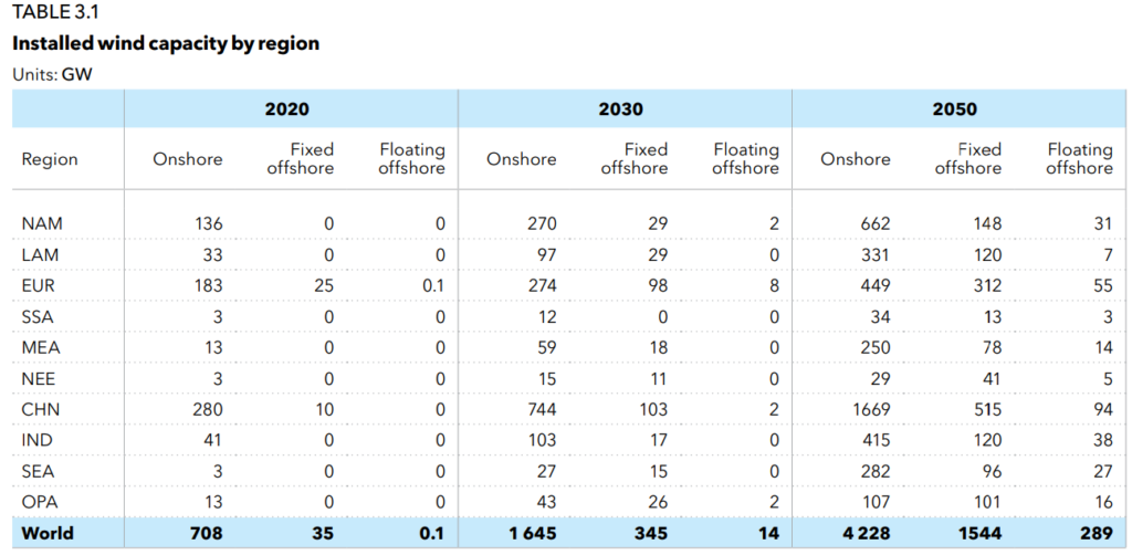 The report says that one third of grid-connected electricity supply in 2050 will be wind-based: 75 per cent onshore wind, 22 per cent bottom-fixed offshore wind, and 3 per cent floating offshore wind.