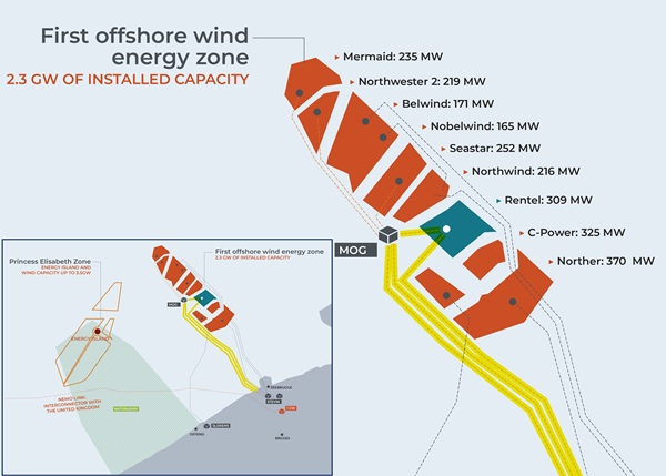 Four wind farms are connected to the MOG: Rentel, Northwester 2, and Mermaid and Seastar (the SeaMade project).