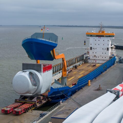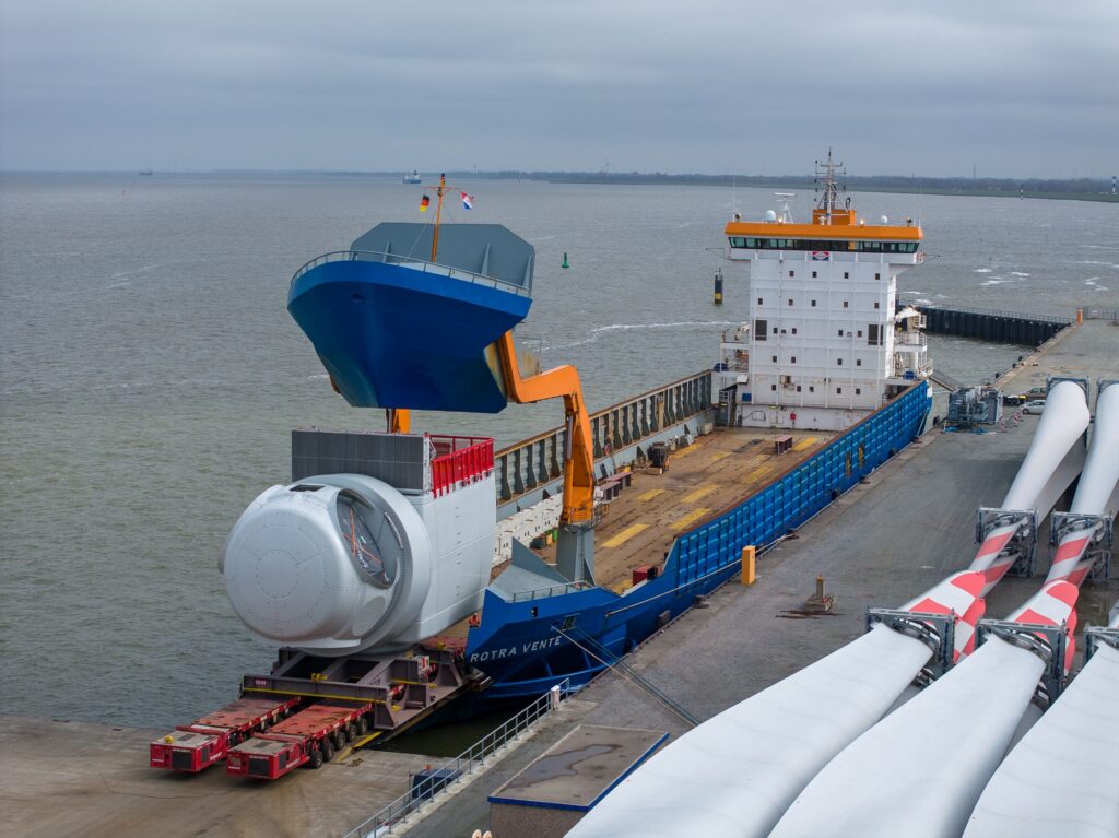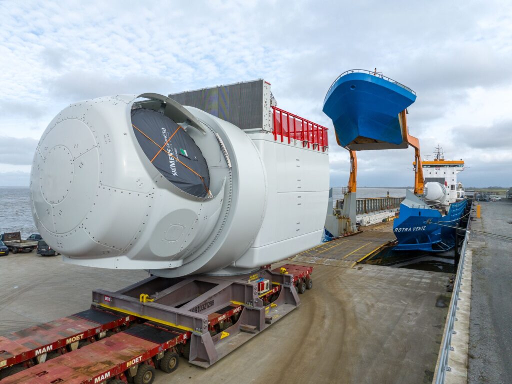 The first 14 MW turbine nacelles have been loaded onto the roll-on/roll-off (Ro-Ro) vessel, Rotra Vente, at Siemens Gamesa’s Cuxhaven plant in Germany. They are destined for the Moray West offshore wind farm and are heading toward the Port of Nigg, Scotland, according to AIS data available online.