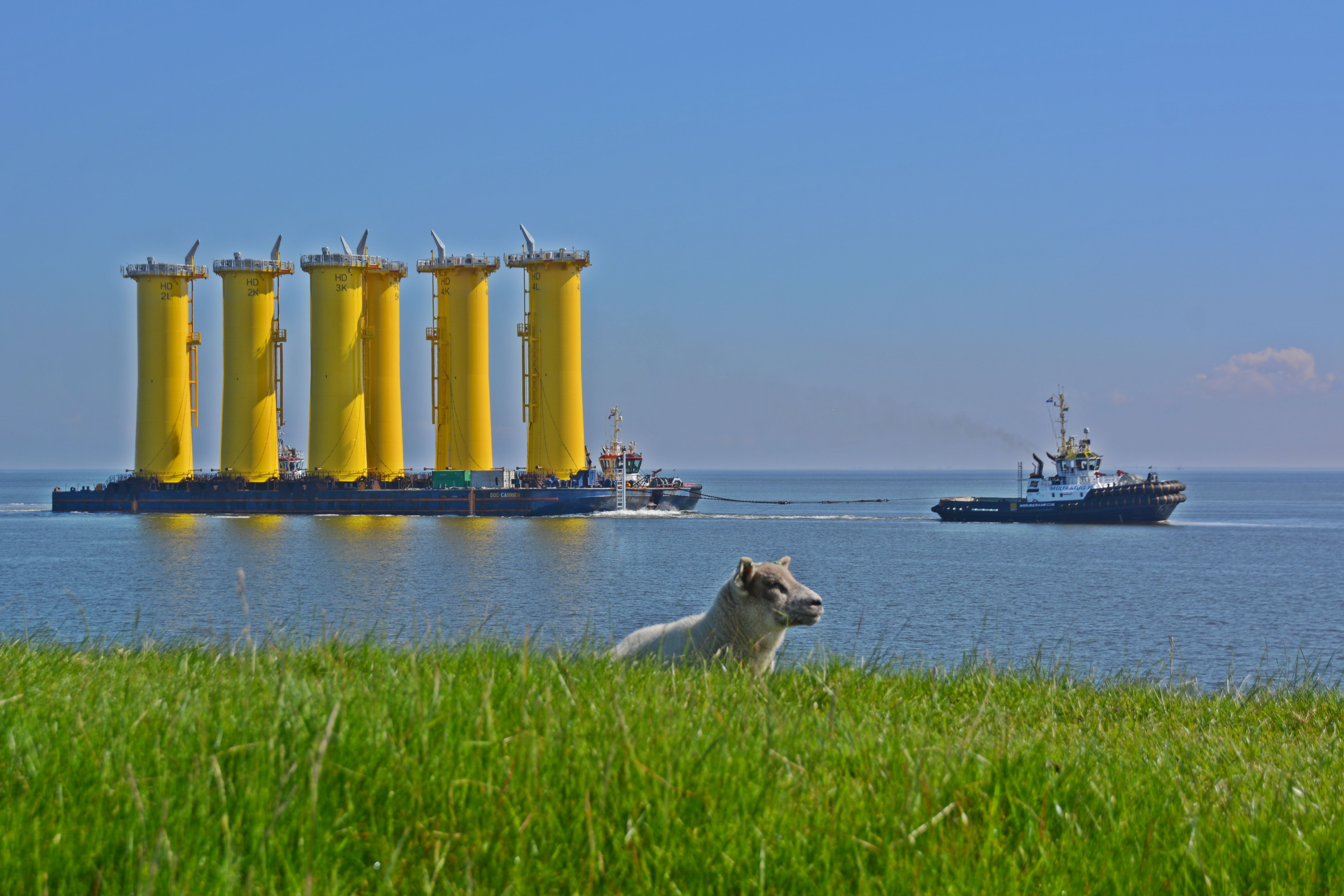 The monopiles and transition pieces had previously been loaded onto floating platforms in Eemshaven in the Netherlands and towed to the construction site by tugboats.