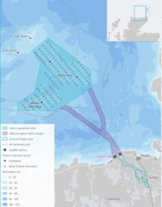 The onshore application provides information on proposed cable landfalls on the north Caithness coast, the project’s substation at Spittal in Caithness, and the underground cables which will extend around 25 kilometres and connect to the substation.