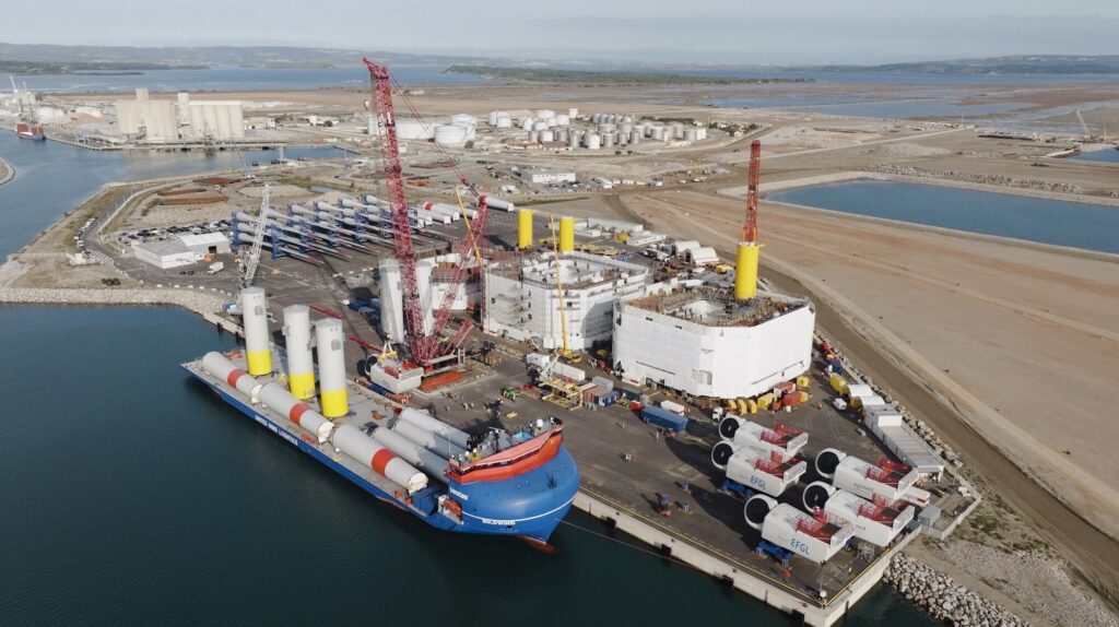 The towers and nacelles for the floating wind project’s Vestas V164-10.0 MW wind turbines have been delivered and unloaded at the new wind terminal in Port-La Nouvelle. The 80-metre-long blades arrived at the port in August this year.