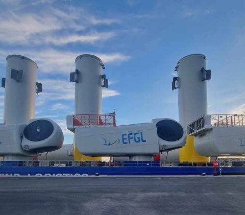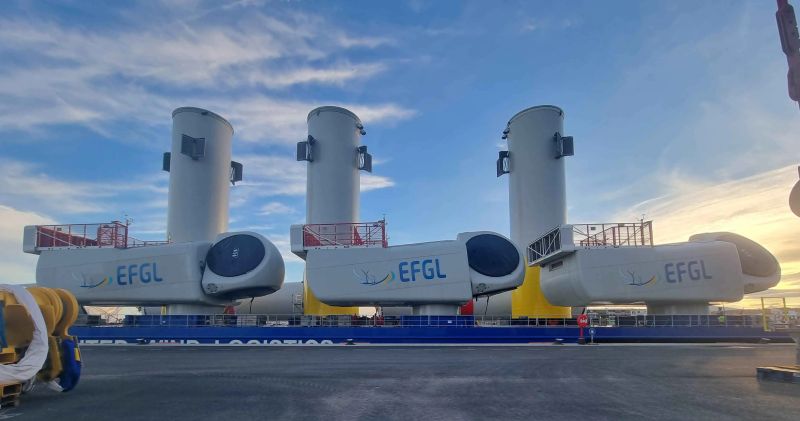 Several new components for the wind turbines destined for the Les Eoliennes Flottantes du Golfe du Lion (EFGL) floating offshore wind farm have arrived at the wind terminal in Port-La Nouvelle, France.