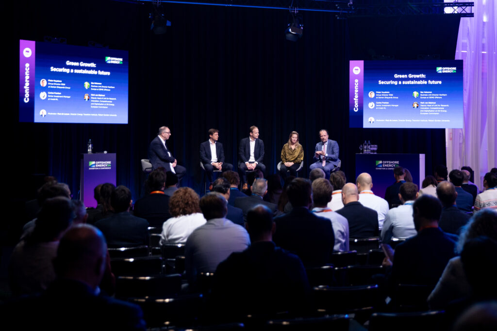 • (11:30 – 12:30) Green Growth: Securing a sustainable future – Harmonizing economic growth with environmental sustainability in the world where we keep building more (offshore energy) infrastructure is up next with panelists from Damen Shipyards Group, Invest-NL, DEME Offshore and the European Commission’s DG Energy.