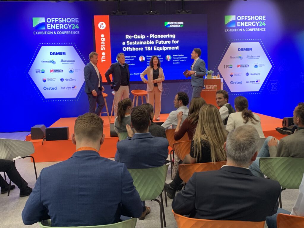 For the last session of the day, MeeMaken, Van Oord, and ECHT regie in transitie representatives presented the Re-Quip Marketplace – a platform aimed at enhancing sustainability and transparency for offshore transport and installation (T&I) equipment and materials.