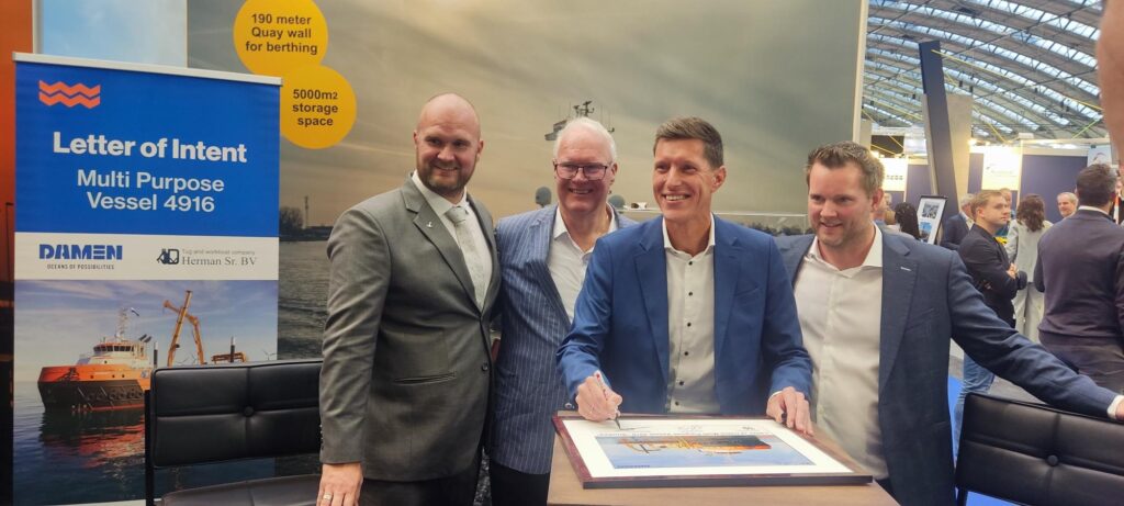 Dutch shipbuilding major Damen Shipyards Group and compatriot tug and workboat company Herman Sr. have just signed a letter of intent (LOI) for the construction of a new methanol-ready diesel-electric multipurpose vessel (MPV) 4916.