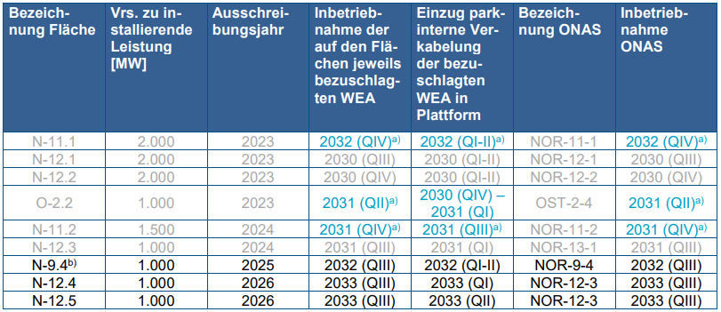 For the Baltic Sea, no additional areas and sites were defined compared to the 2023 plan. BSH says that in a future update, further areas could be defined for commissioning in 2034 and later.