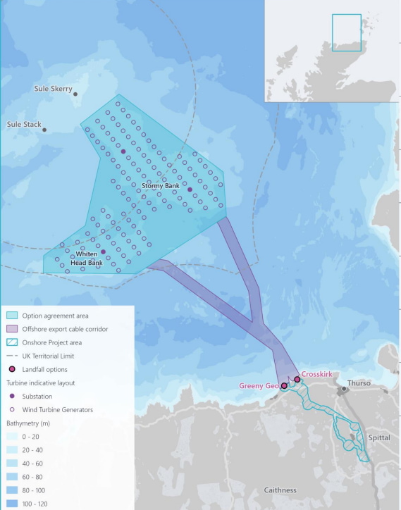 In June 2024, the Highland Council approved in principle the project’s application for onshore planning permission, covering the underground cables and electrical infrastructure required to connect the wind farm to the national transmission network in Caithness.