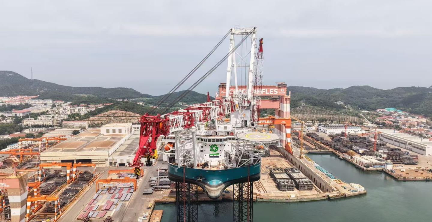 DEME has officially received its new wind turbine installation vessel (WTIV), Norse Wind, from CIMC Raffles Shipyard in China. The vessel is set to begin operations in early 2026.