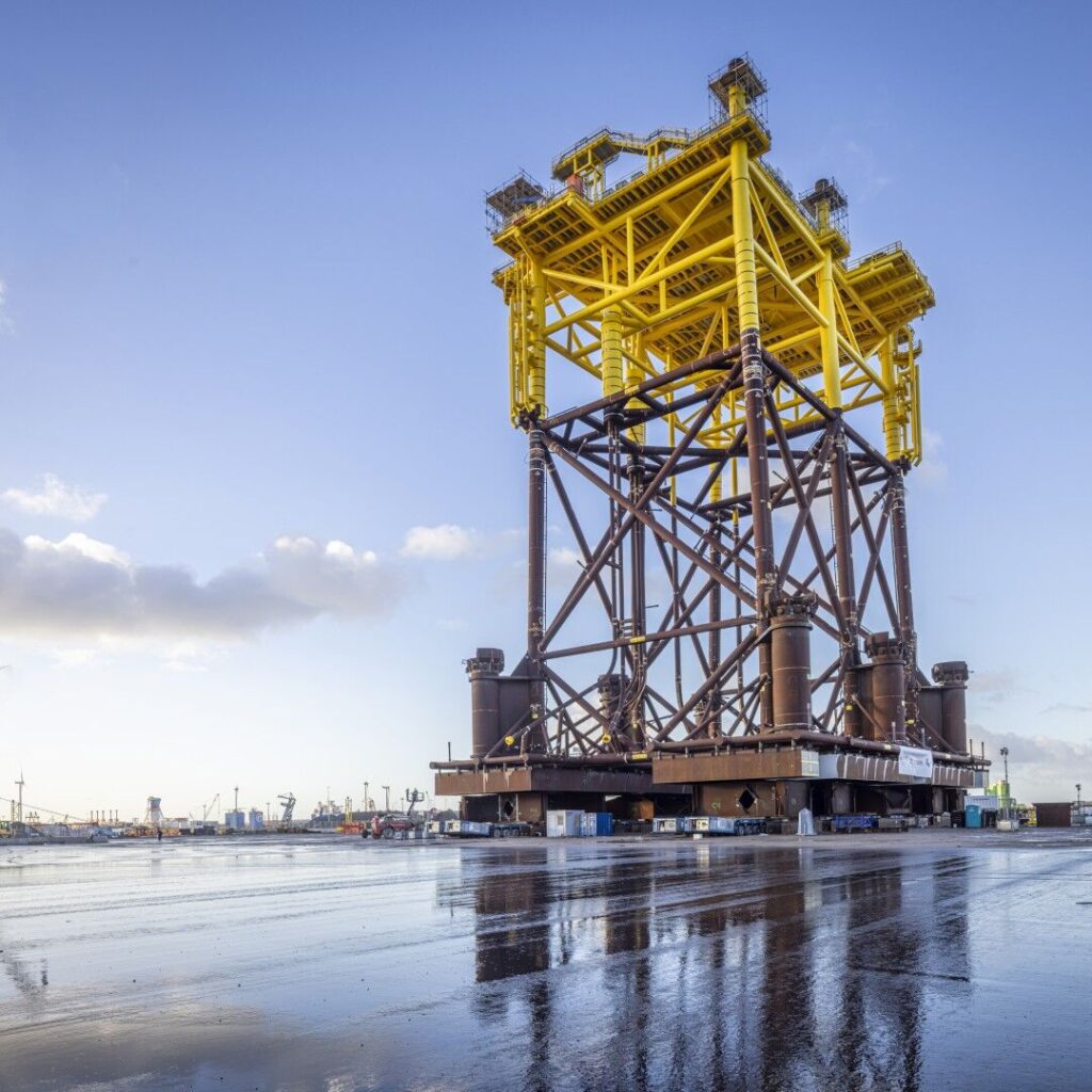 The jacket foundation, which is 72 metres high, was built by Smulders in Vlissingen.