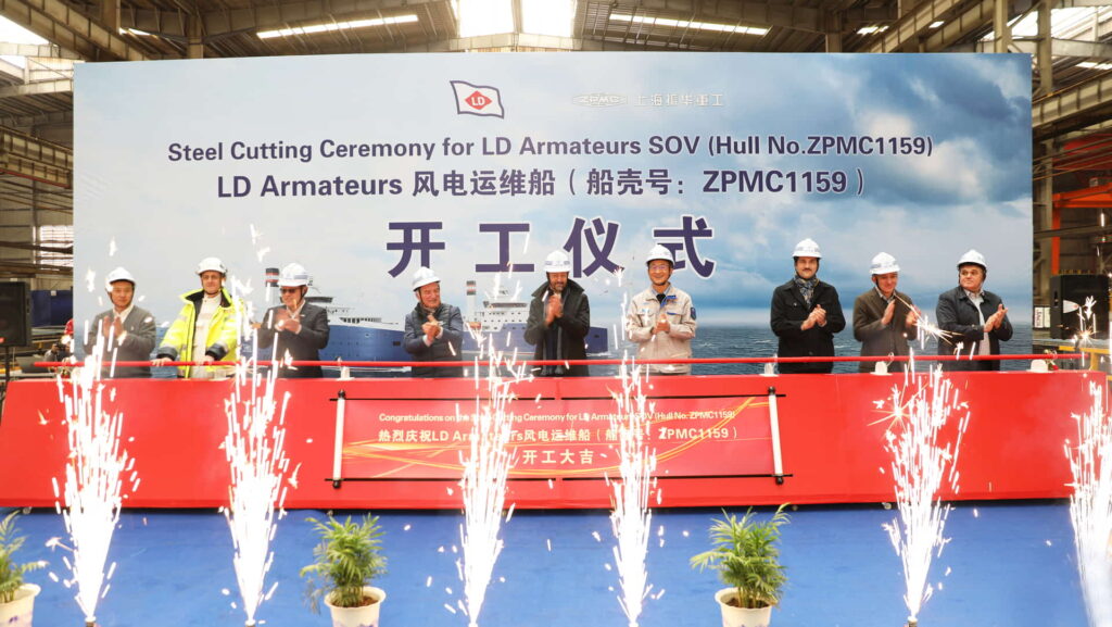 ZPMC (Shanghai Zhenhua Heavy Industries Company Limited) has started the construction of the first of two service operation vessels (SOVs) for the French shipping group Louis Dreyfus Armateurs (LD Armateurs), which will serve Vattenfall’s offshore wind farms in Germany.