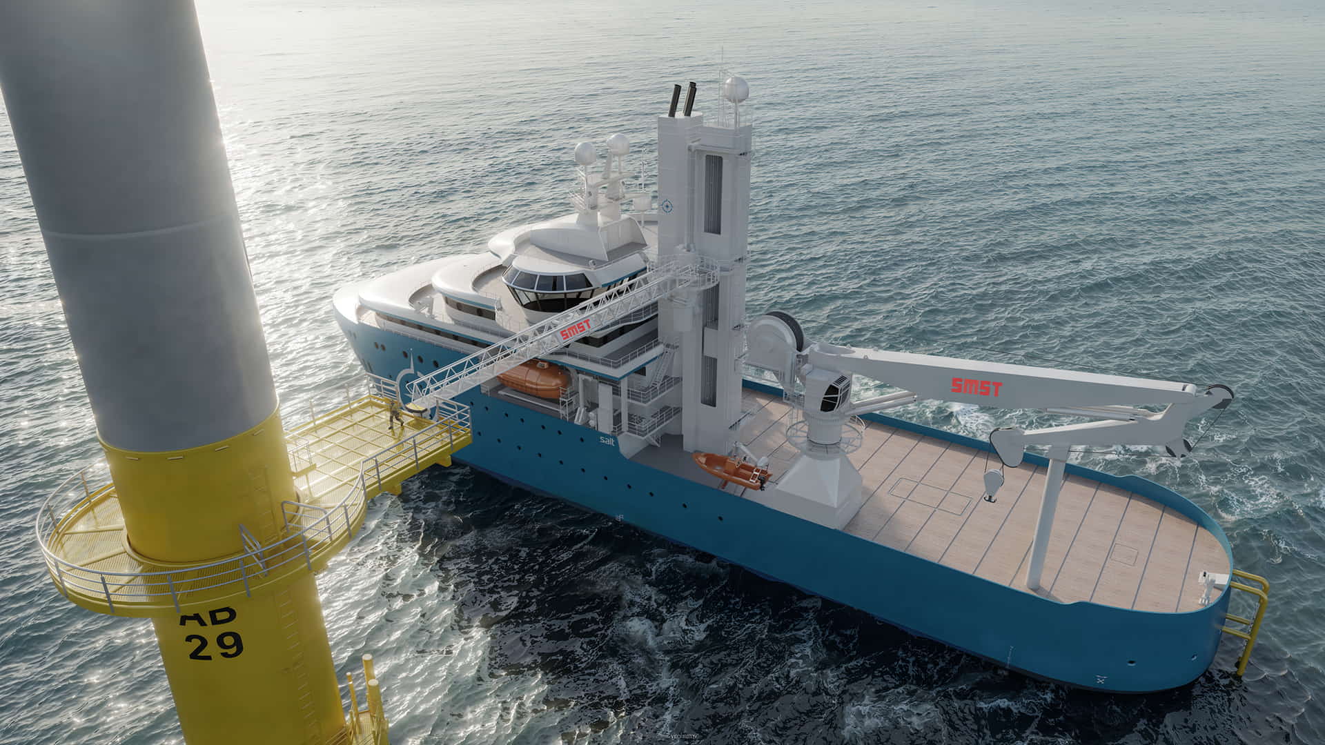 For the vessel, dubbed CSOV Plus, SMST will supply an access and cargo tower fitted with a motion-compensated gangway (Telescopic Access Bridge L2) and a 100-tonne knuckle boom crane.