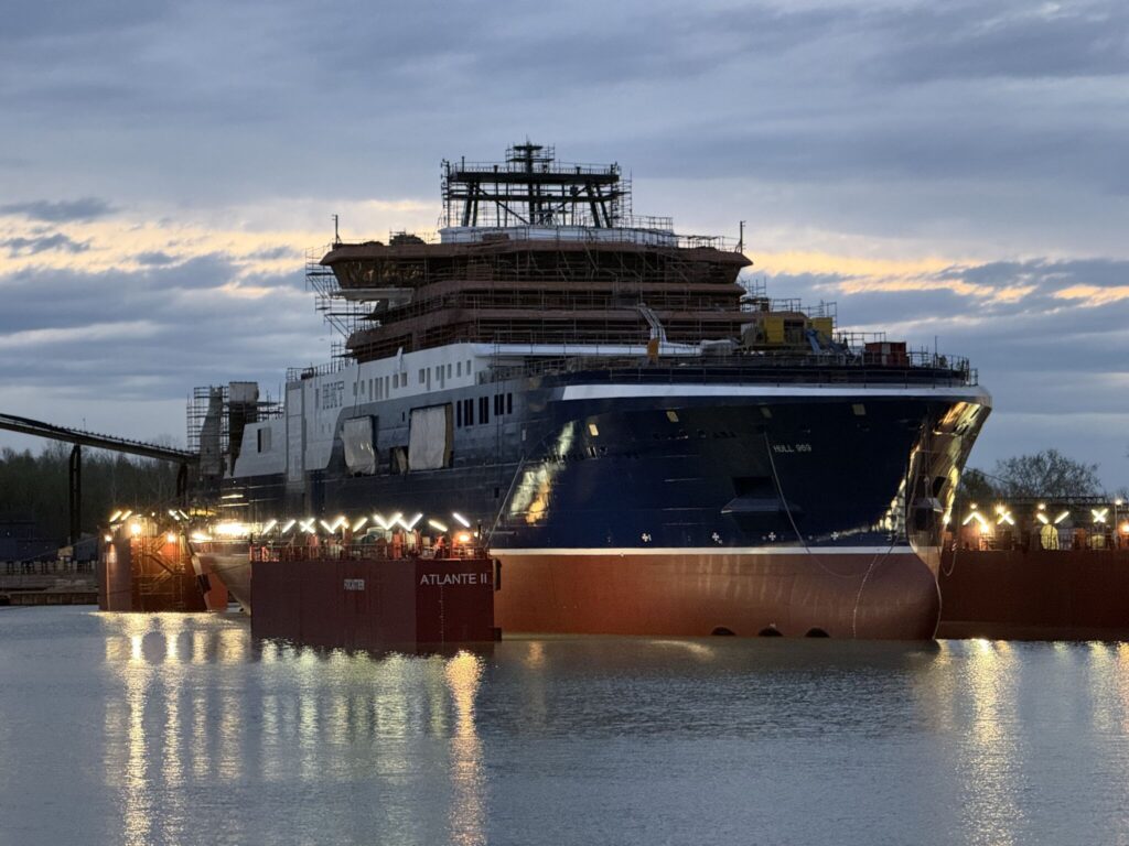 The hull of NKT’s new cable-laying vessel (CLV) NKT Eleonora has been launched into the water at Vard’s shipyard in Tulcea, Romania.