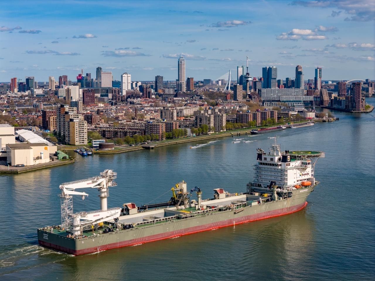 The vessel arrived in Rotterdam earlier this week to undergo further outfitting in Waalhaven, as well as commissioning, after which it will go on its first rock installation project in the Baltic Sea later this year.