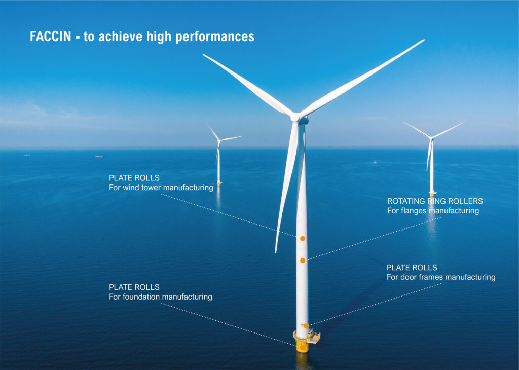 FACCIN, a leader in the design and fabrication of rolling machines and wind systems to produce wind tower cans, foundations, flanges, and door frames.