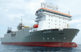 Boskalis’ fallpipe vessel (FPV) Rockpiper is carrying out scour protection works at the Aberdeen Bay Offshore Wind Farm. According to a notice to mariners, Rockpiper will be working at the project site for three weeks and was scheduled to start on 28 October.