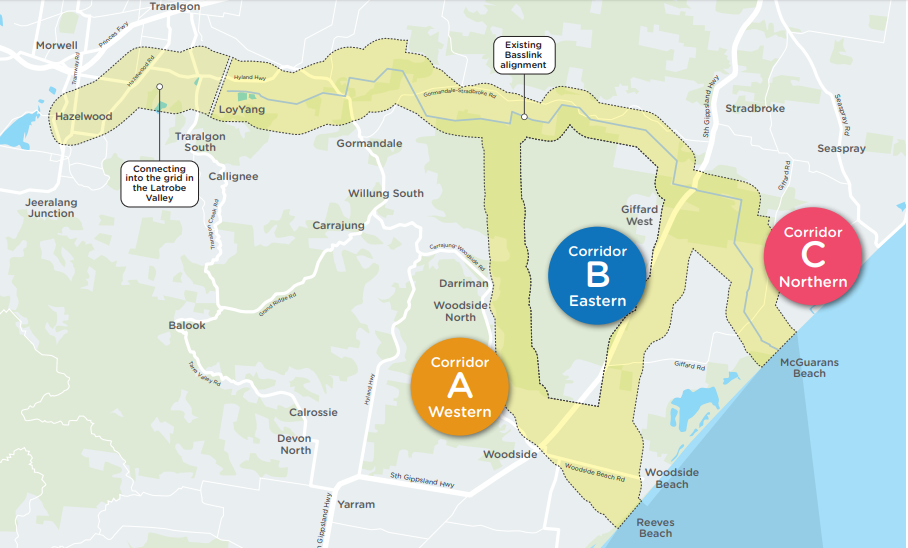 Star of the South Wind Farm has unveiled three potential power transmission corridors for Australia’s first offshore wind farm.